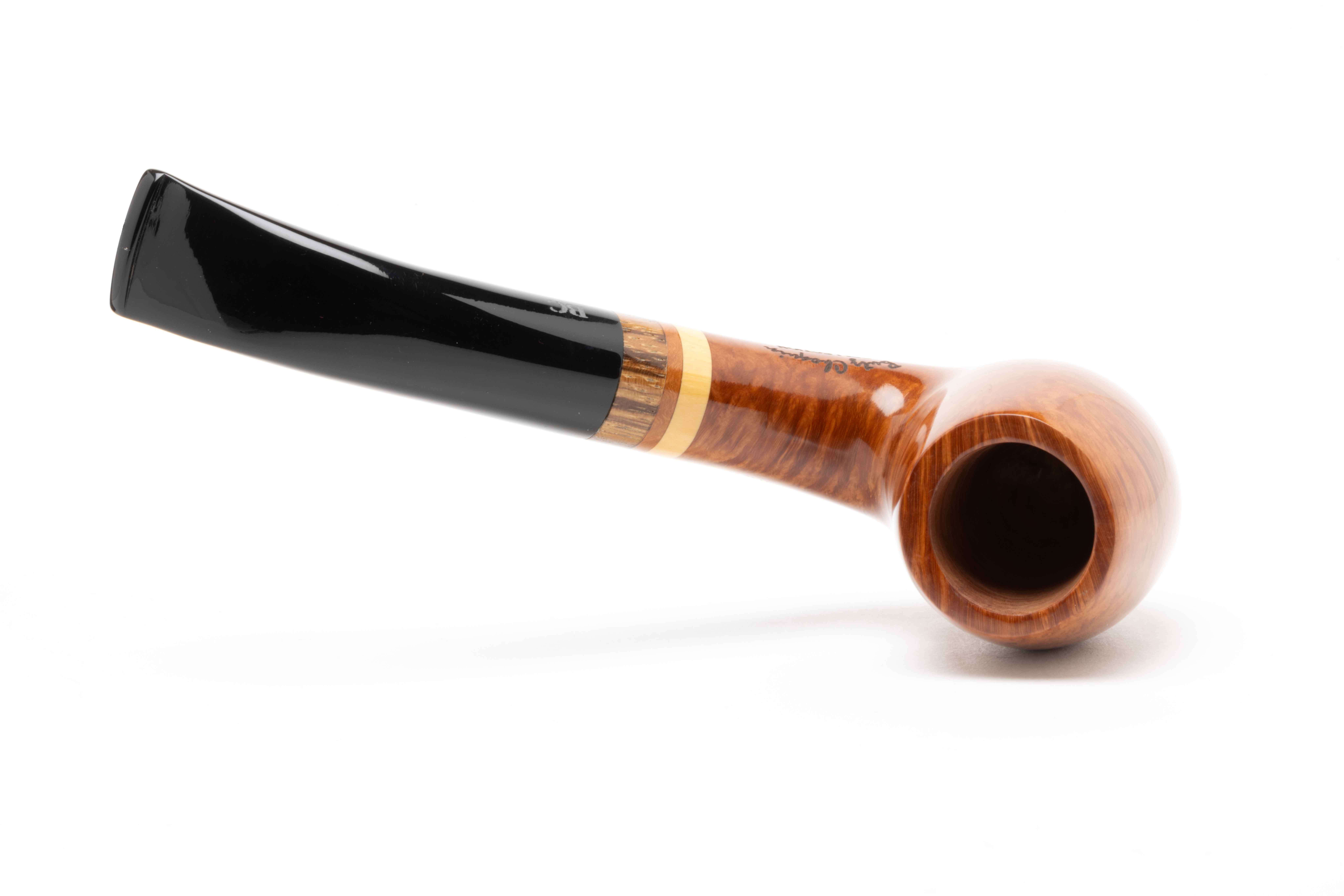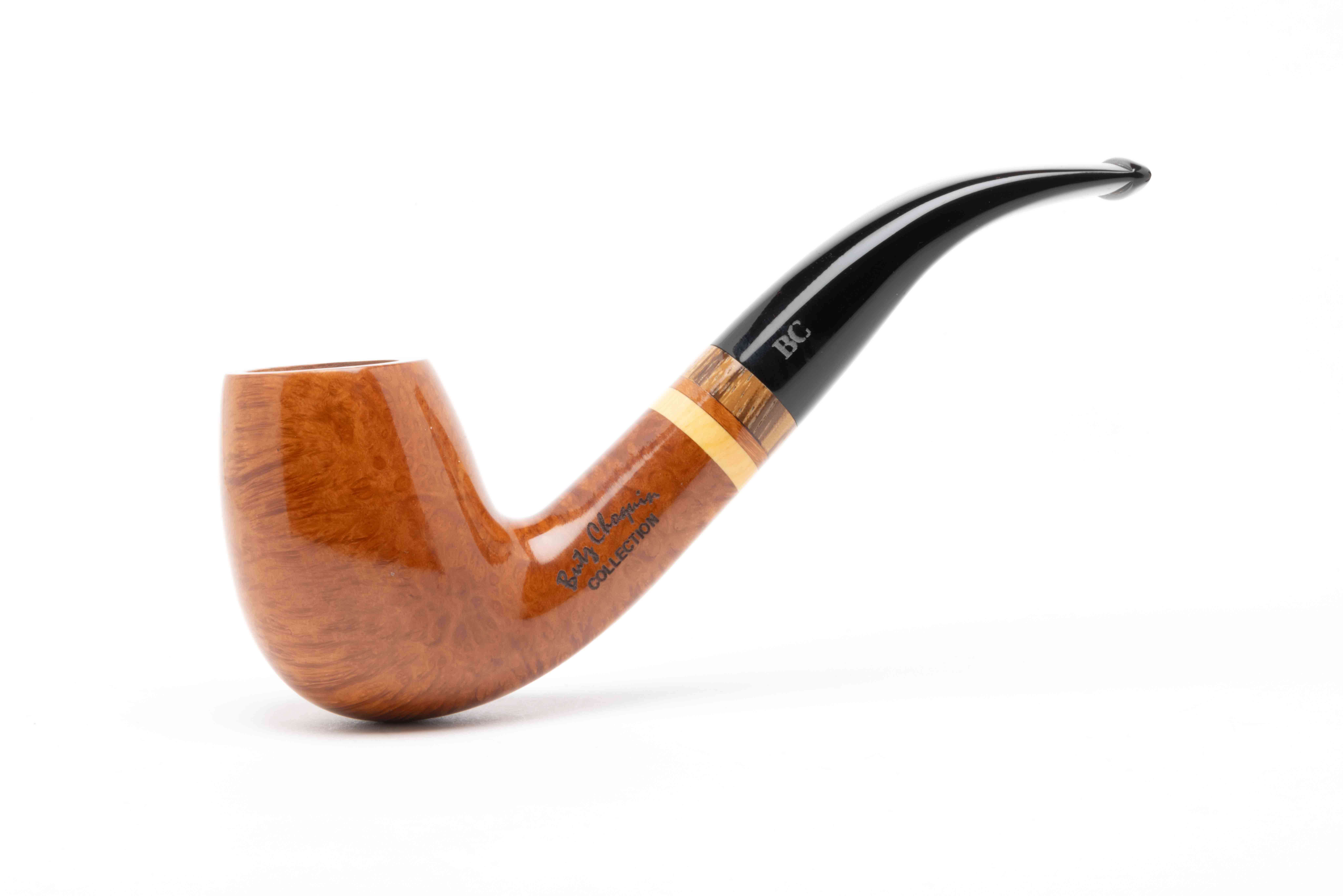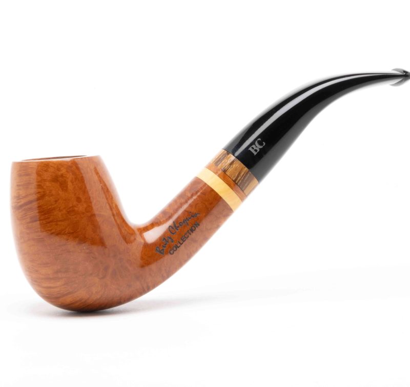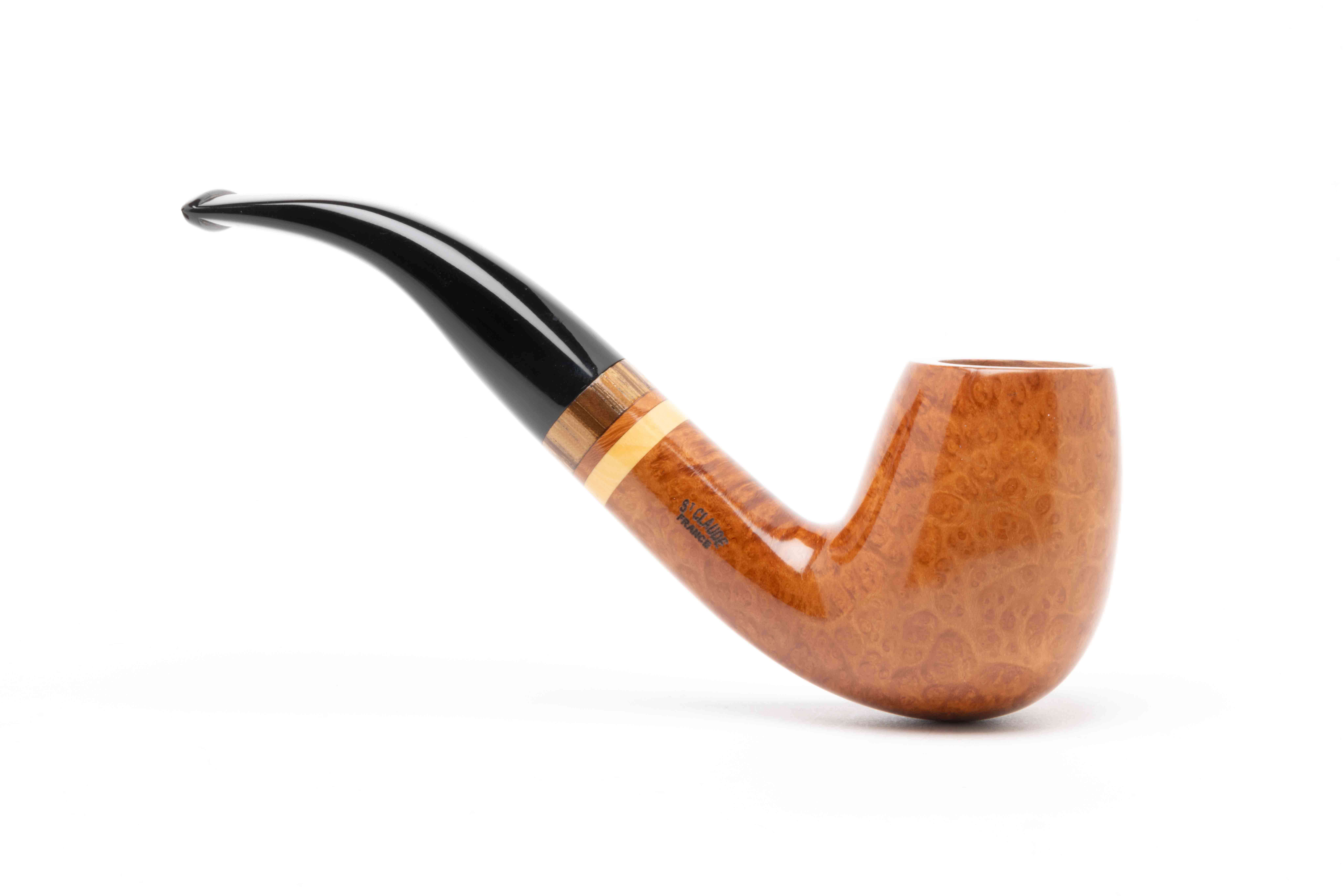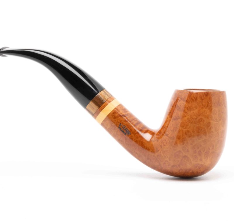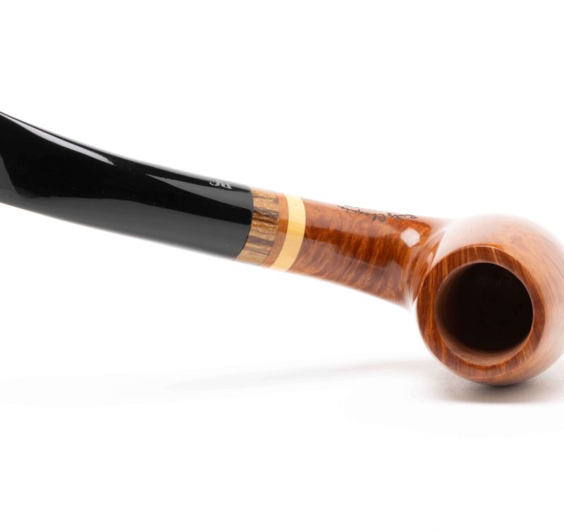 Avec une bruyère claire, lisse, lumineuse, cross grain, cette pipe courbe dispose d’un magnifique oeil de perdrix.