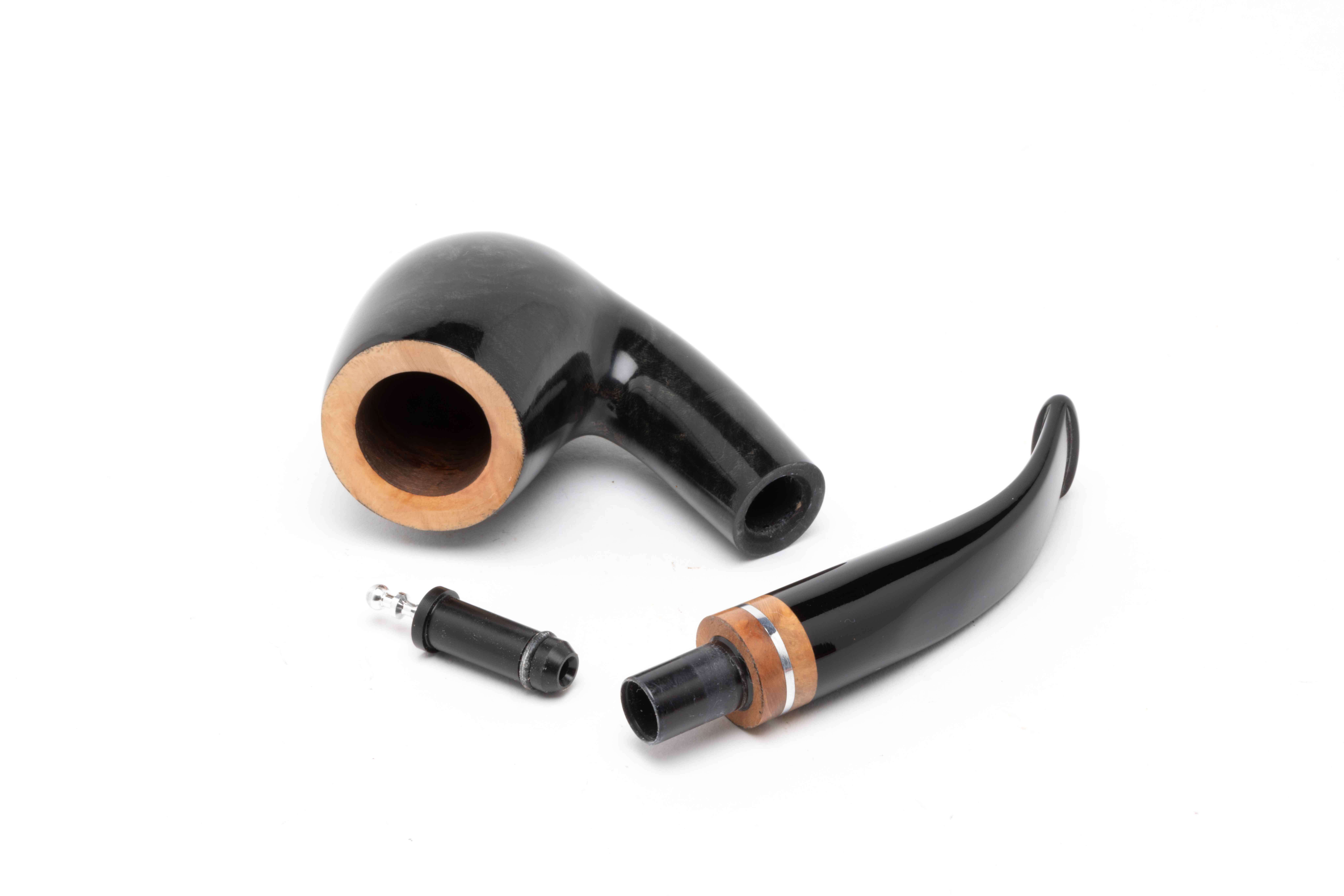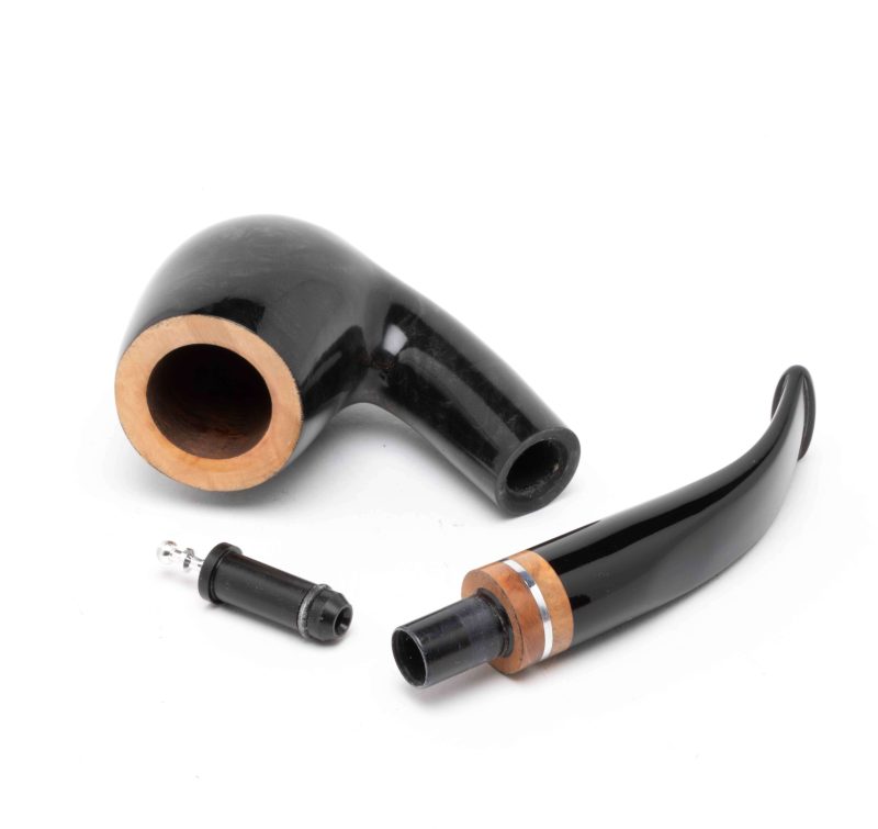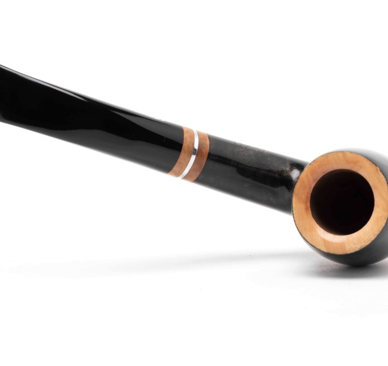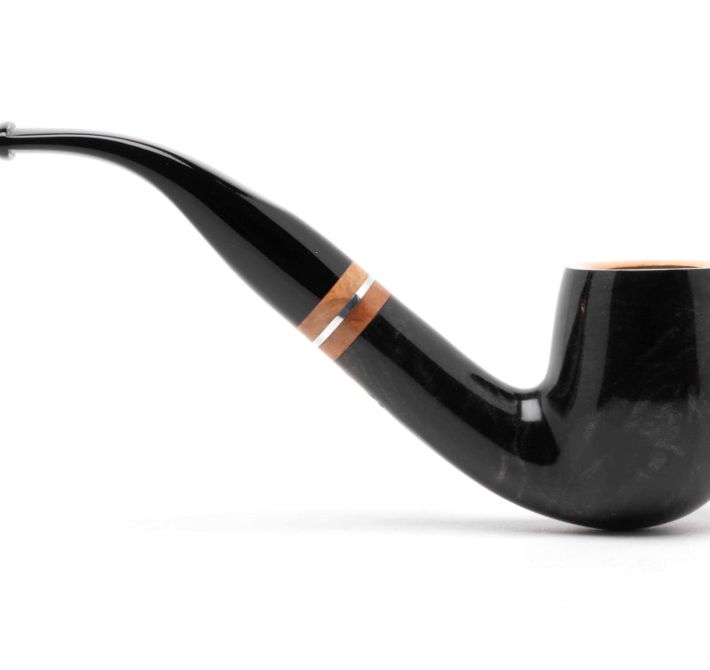 En bruyère bien épaisse, elle dispose d’une finition gris foncée brillante qui laisse transparaître les veines du bois.