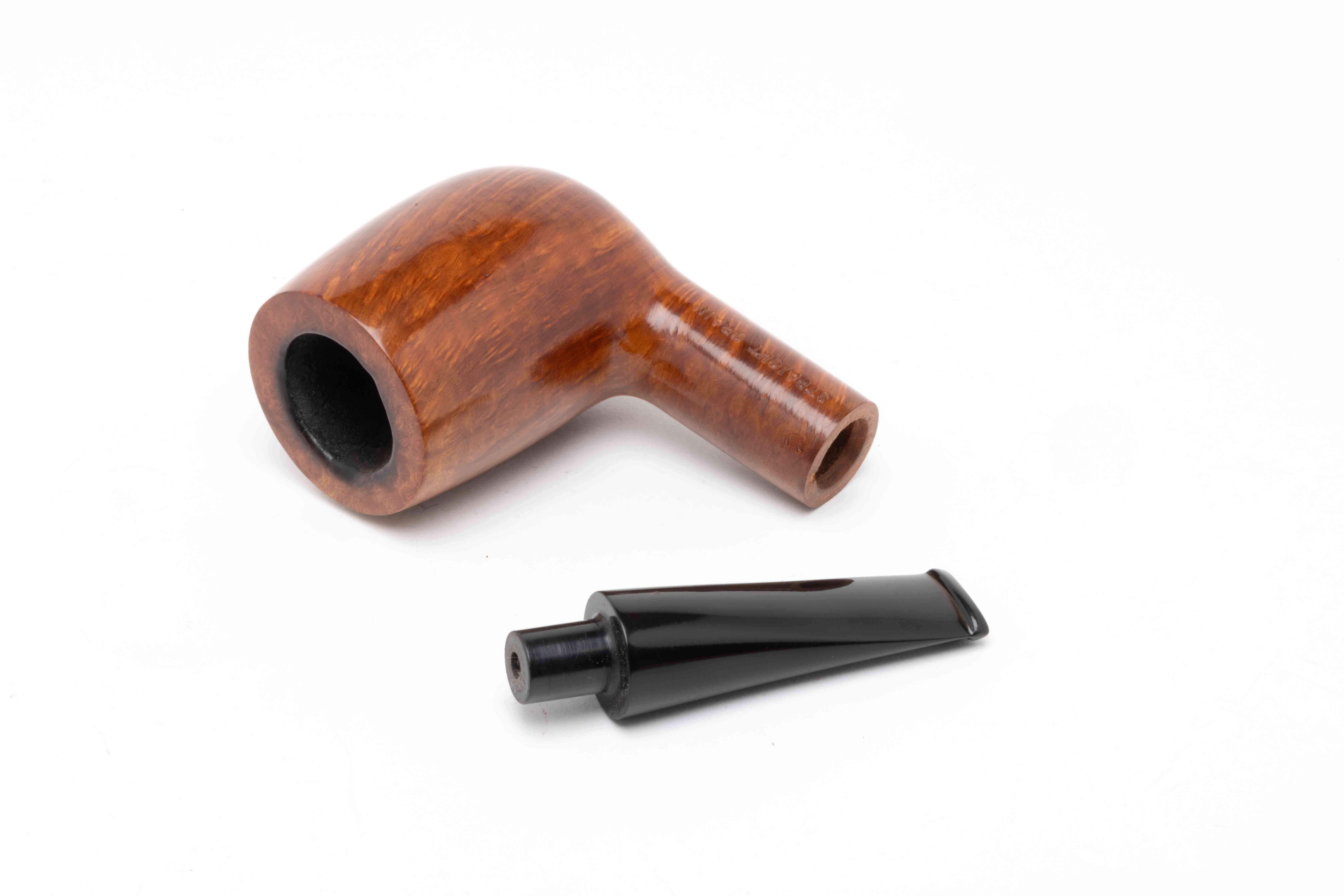 Cette pipe anglaise est une pipe estate en très bon état, avec son tuyau d’origine estampillé d’un P dans un losange.