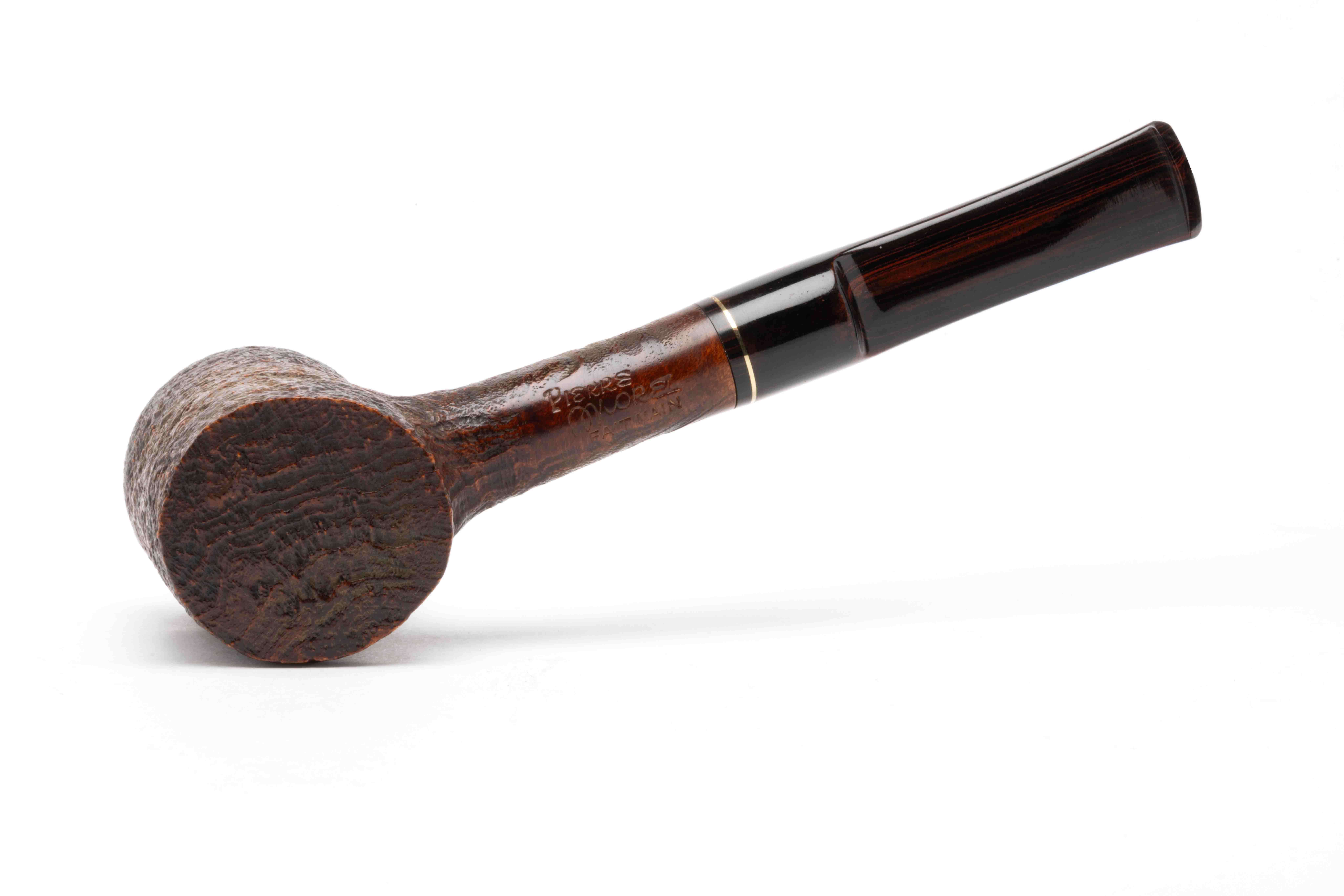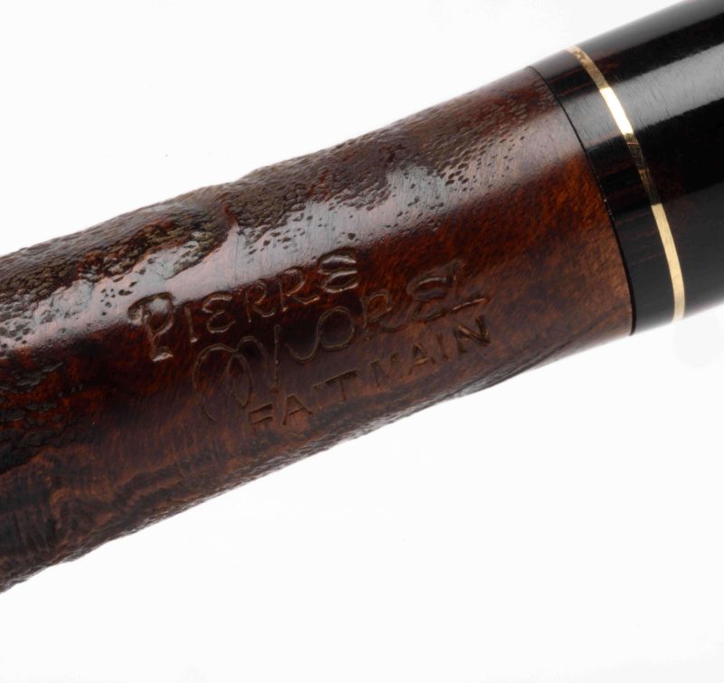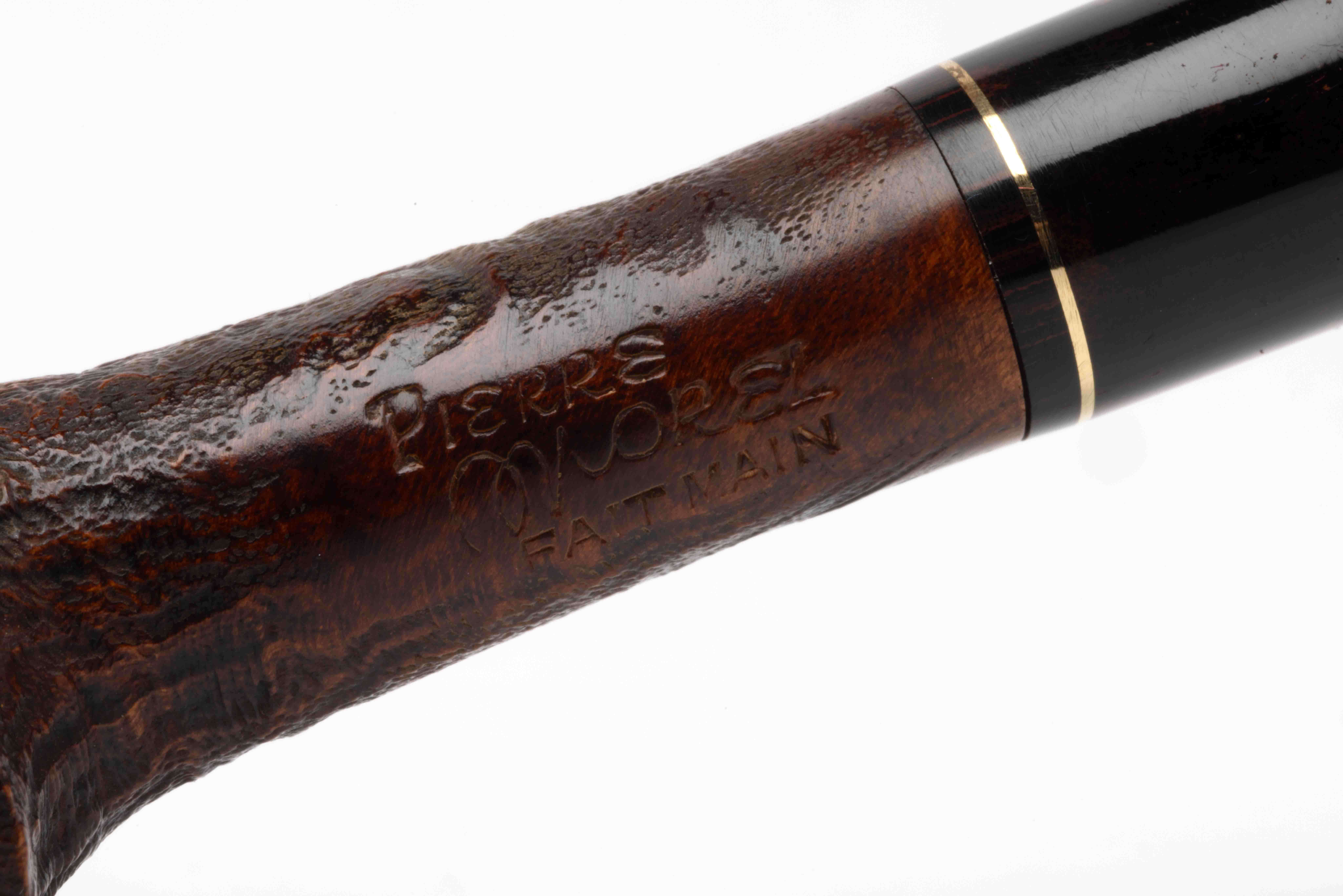 Cette pipe française, de Saint Claude, est une réalisation de Pierre Morel qui révèle aussi bien la bruyère que les piverts se nourrissent du bois.