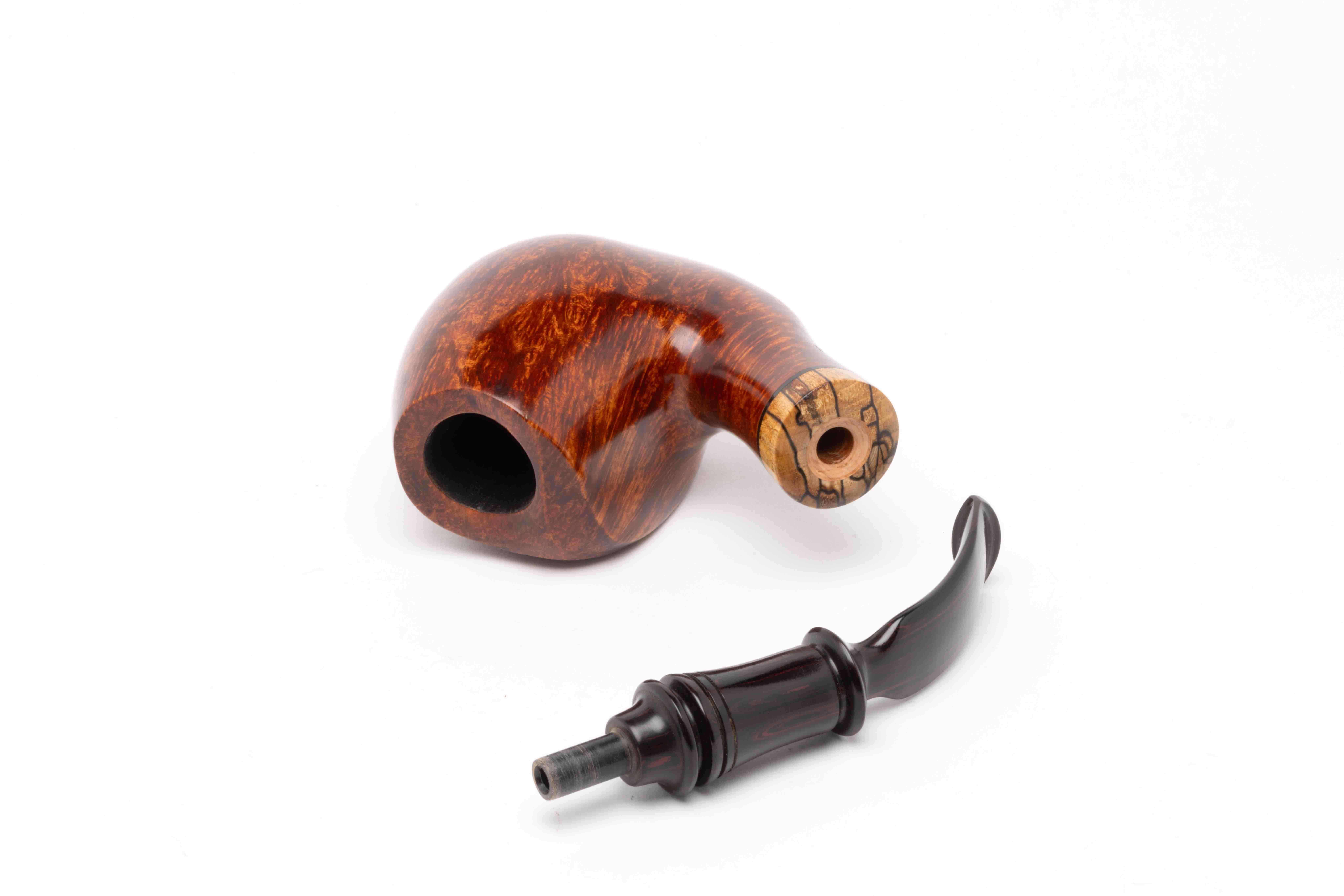 Gradée modestement AA par son Mastro Geppetto de Saint Claude, Pierre Morel, MOF français le plus talentueux, cette pipe aux formes généreuses, délicates mérite un remerciement particulier à « Sonia ».