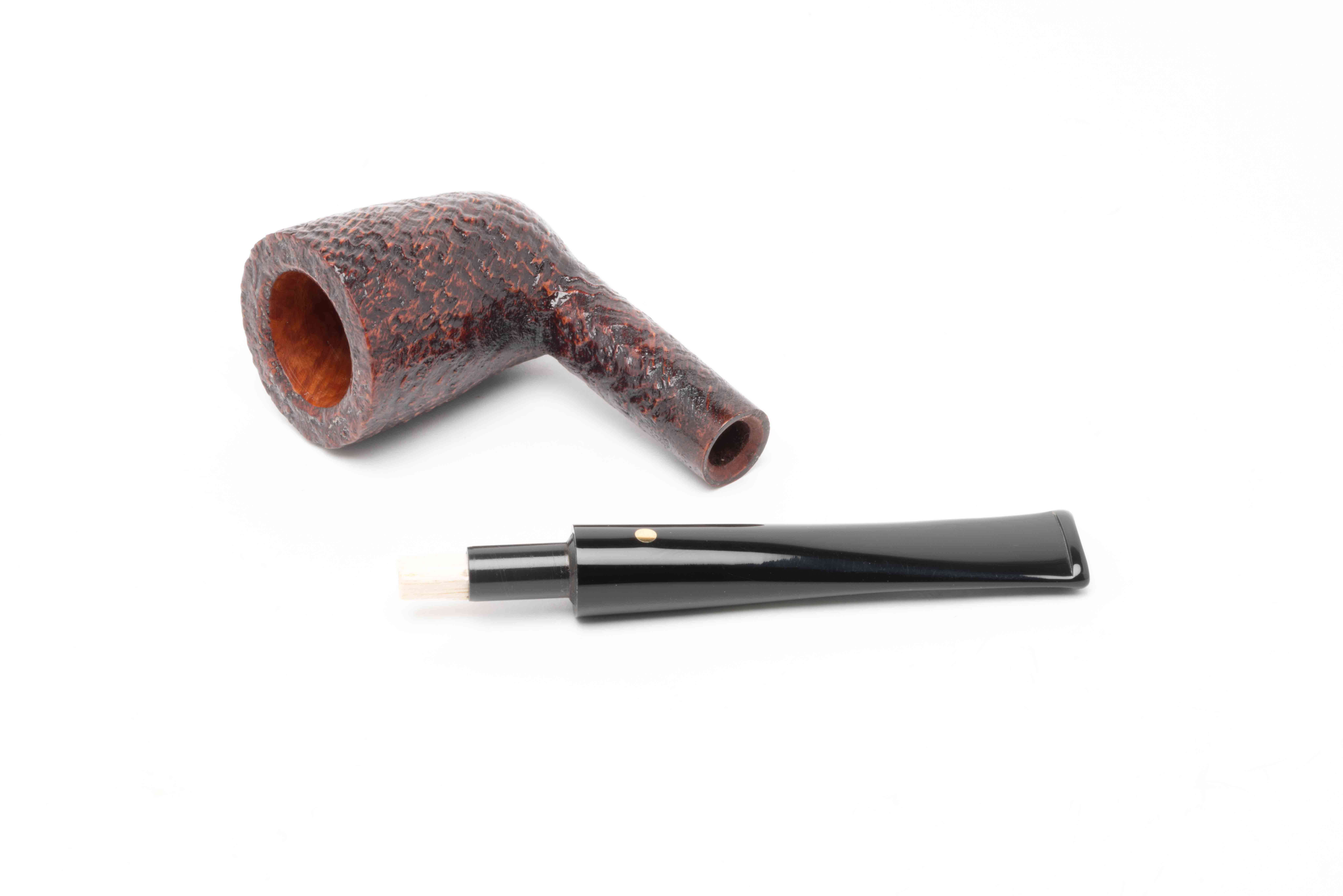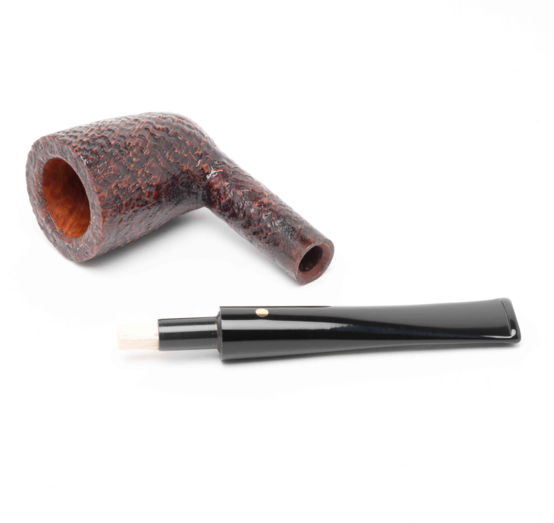 Droite avec un foyer aux parois qui s’évasent, cette pipe italienne est une Savinelli Punto Oro sablée.